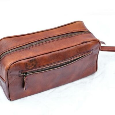 Keep your all grooming products organized and accessible with this stylish leather toiletry bag. Whether you?re going globetrotting or heading to the travel and gym, this essential small leather piece of kit will help you organize your things easily so you can take them with you wherever you go.
